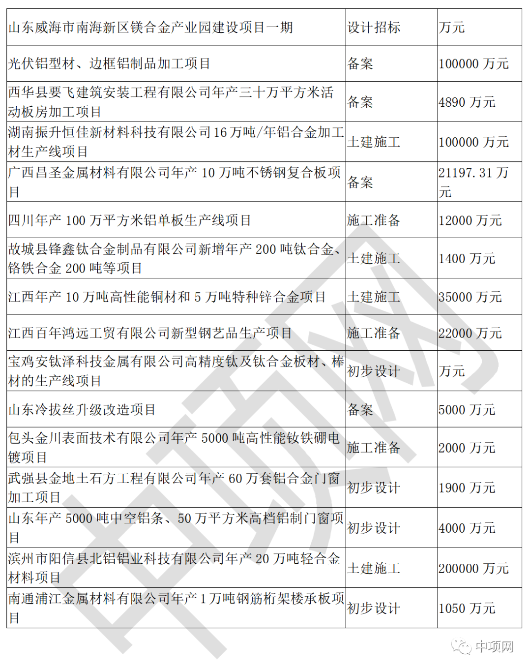 12月全國擬建在建有色金屬加工、鋼鐵加工項目